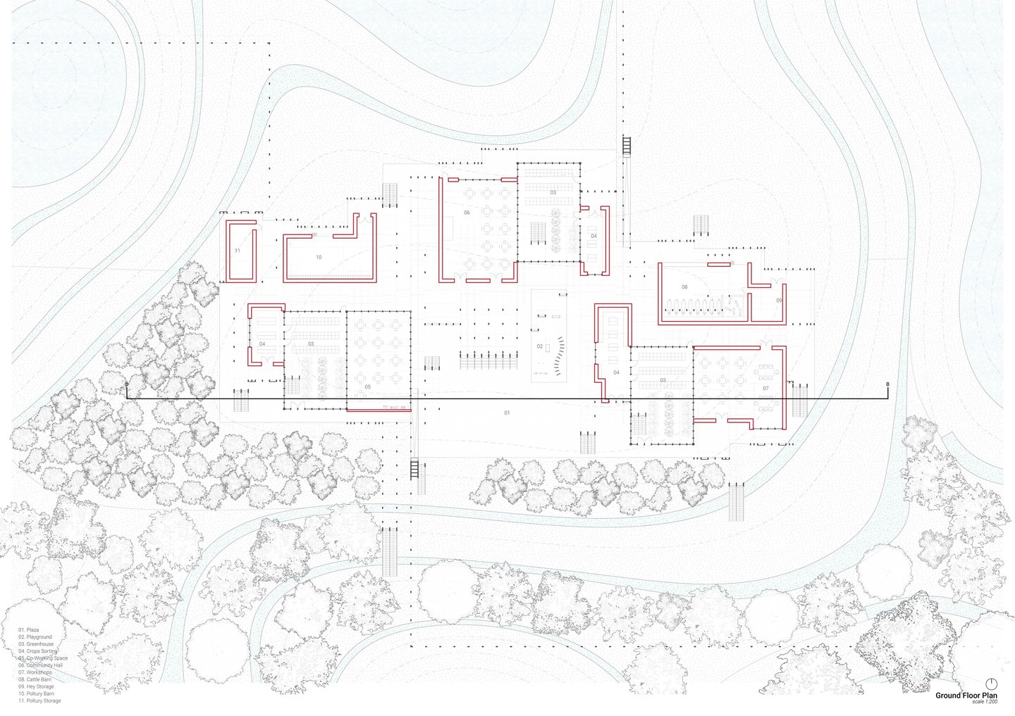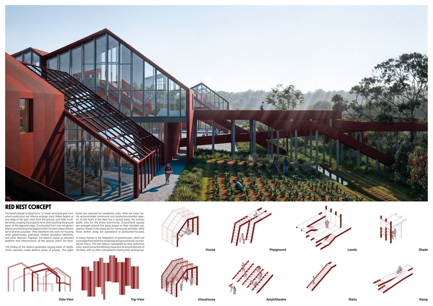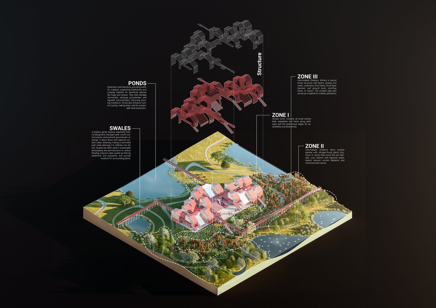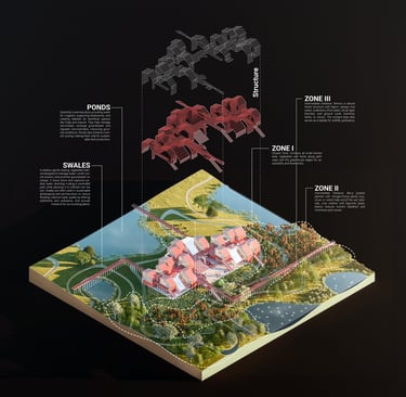 Red Nest seeks to bridge this gap by inviting people to leave polluted urban centers and embrace a life intertwined with nature. Rooted in permaculture principles, the project reimagines farmland as livable, self-sufficient settlements rather than production-driven spaces. Spread across the landscape, these small-scale communities will sustainably produce their own food and energy, offering a harmonious lifestyle for farmers and remote workers who rarely need to venture beyond the site.