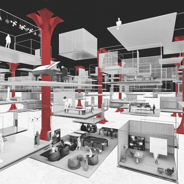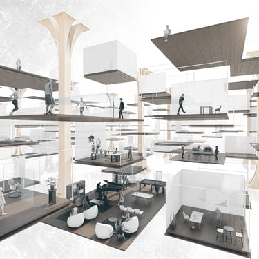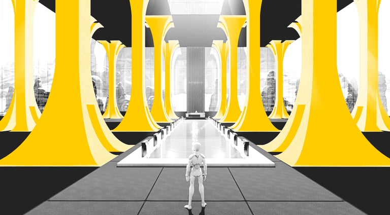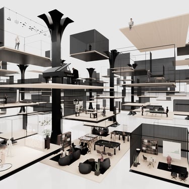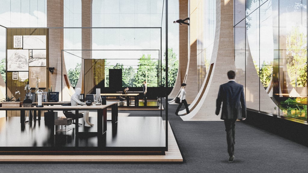 In a world where commodities prevail, a symbol of a higher power is challenged with freedom. Work-Space is designed on a perceptive basis to accommodate all employees' needs because customization is key, and humans usually seek it in any place to make it feel like it's their own. What once was a symbol for a higher power is now responsible for the circulation and productivity.