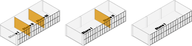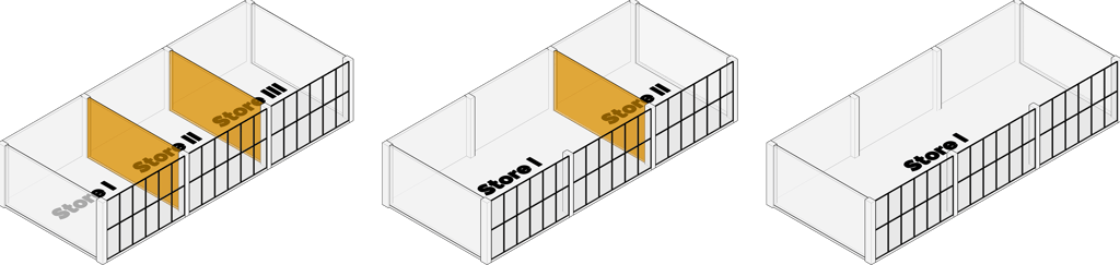 Flexible Module for tenants to acquire the suitable area for their businesses, also by placing structural elements on the sides, it creates an uninterrupted space, giving tenants the room to unleash their creativity without holding back.