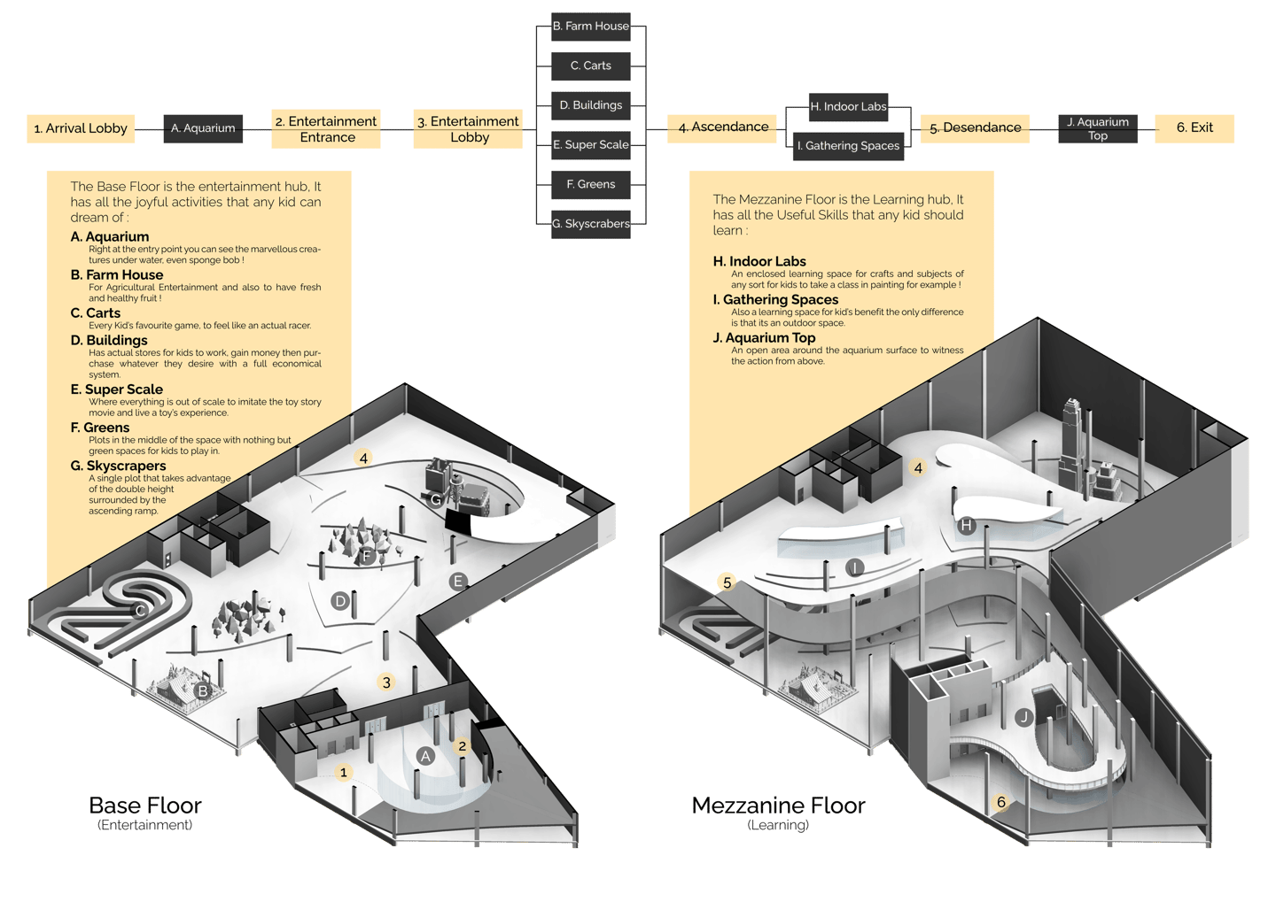 Landscape designed by studying the gates and paths anyone could need, and also to make it as memorable and iconic as possible.