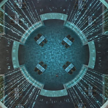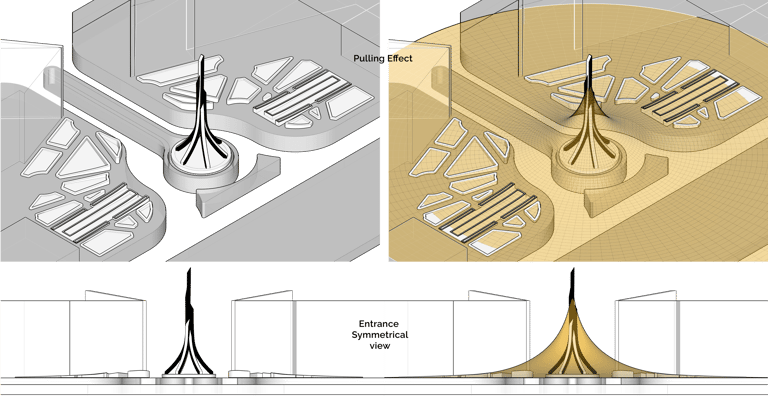 - Centralized landmark with the squares logo engraved in a subtle and elegant way, also to articulate the center line between the two symmetrical sides of the main plaza.