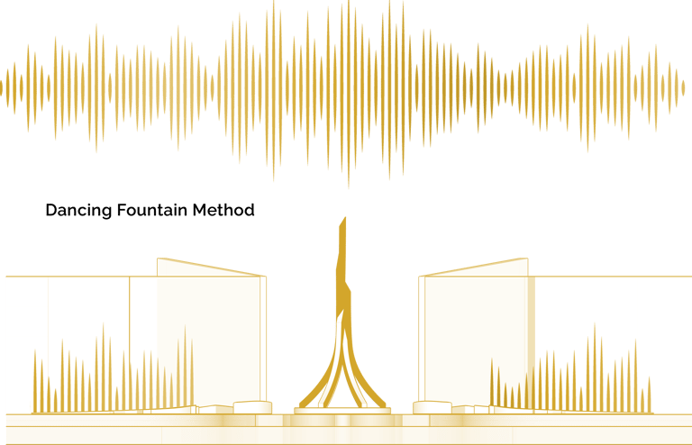 - Has a total of four dancing fountains, two on each side, to serve the memorability of the landmark with an iconic scene of the entrance.